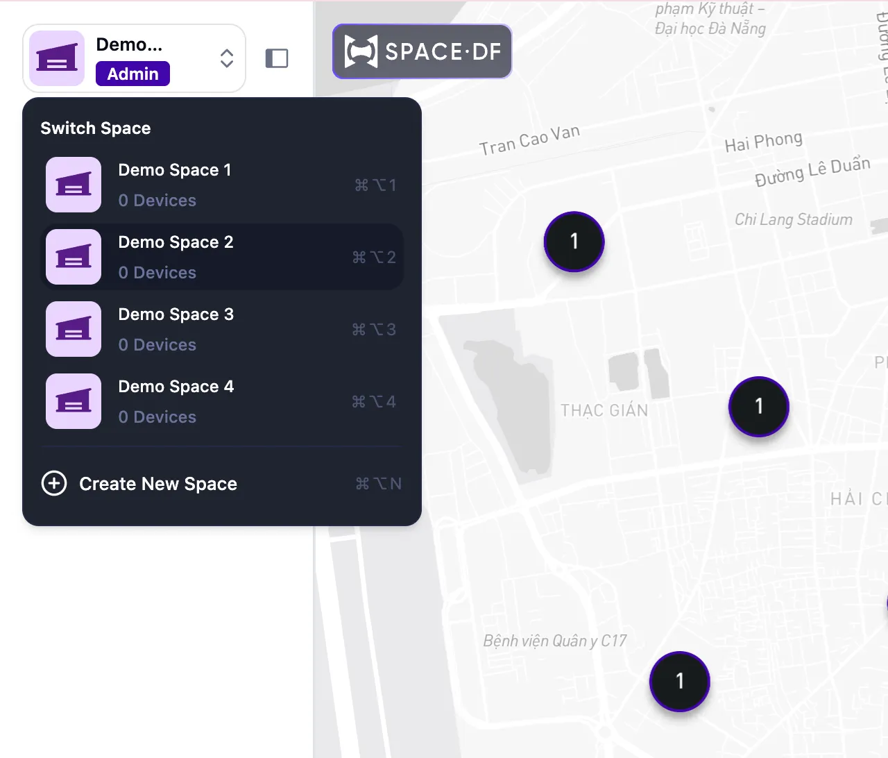 A Space is a workspace within an Organization where devices are actively used and monitored in real-world use cases. This is where you track device status, view data, and interact with devices through a visual dashboard.